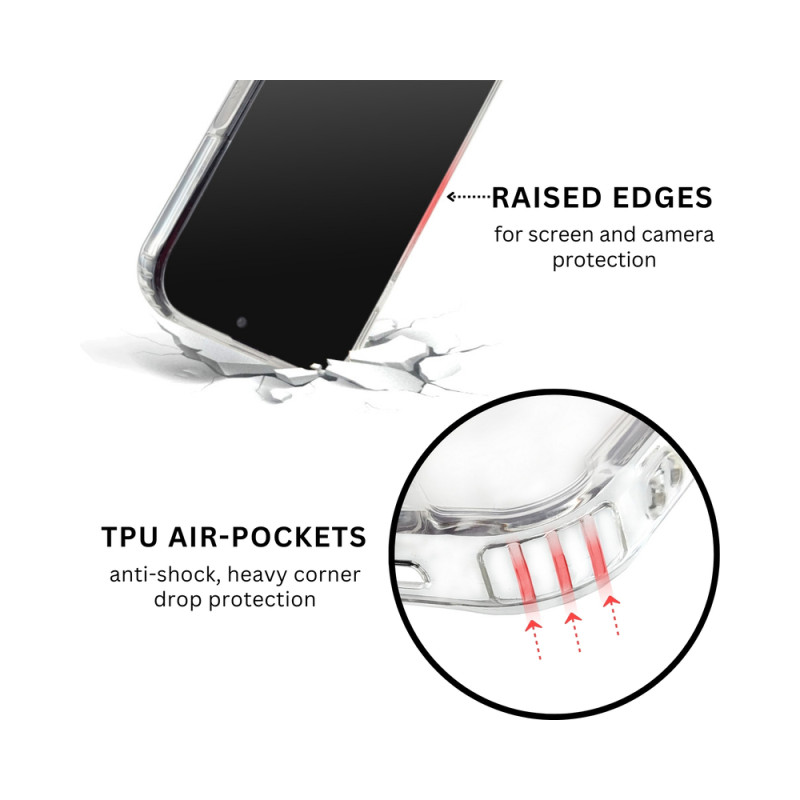 ComoPlus are inel de absorbtie magnetica incorporat. Aceasta husa garanteaza protectie suplimentara telefonului tau, cu avantajul ca poti vedea finisajul in culorile stralucitoare ale acestuia. Spatele este proiectat pentru a fi robust si este fabricat din policarbonat dur transparent (PC). Partile laterale sunt fabricate din poliuretan termoplastic transparent (TPU) de inalta calitate, un material mai moale si mai flexibil care se potriveste perfect cu butoanele. ComoPlus ofera o senzatie confortabila, aderenta foarte buna si este conceput pentru a absorbi socurile de la impact si pentru a asigura rezistenta maxima la zgarieturi.