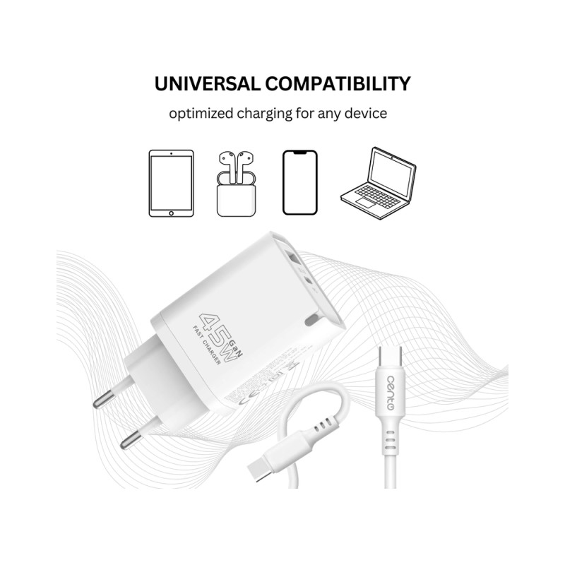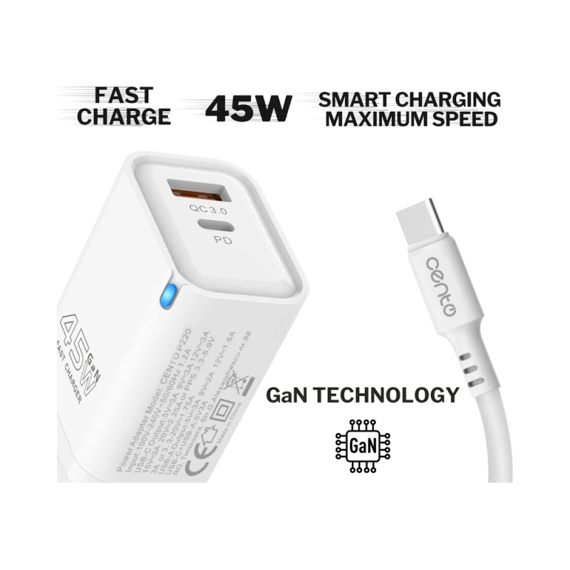 Alege setul CENTO (adaptor si cablu) pentru incarcare rapida cu protectie la supracurent, supraputere si la scurtcircuit. Materialul din care este fabricat ii ofera o rezistenta mecanica ridicata. Design-ul compact si usor il face ideal pentru calatorii, fiind compatibil cu toate modelele de telefoane cu conectorul specificat in denumire.