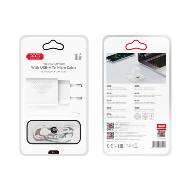 Specificații - Incarcator XO L159 FAST MicroUSB (USB 18W)